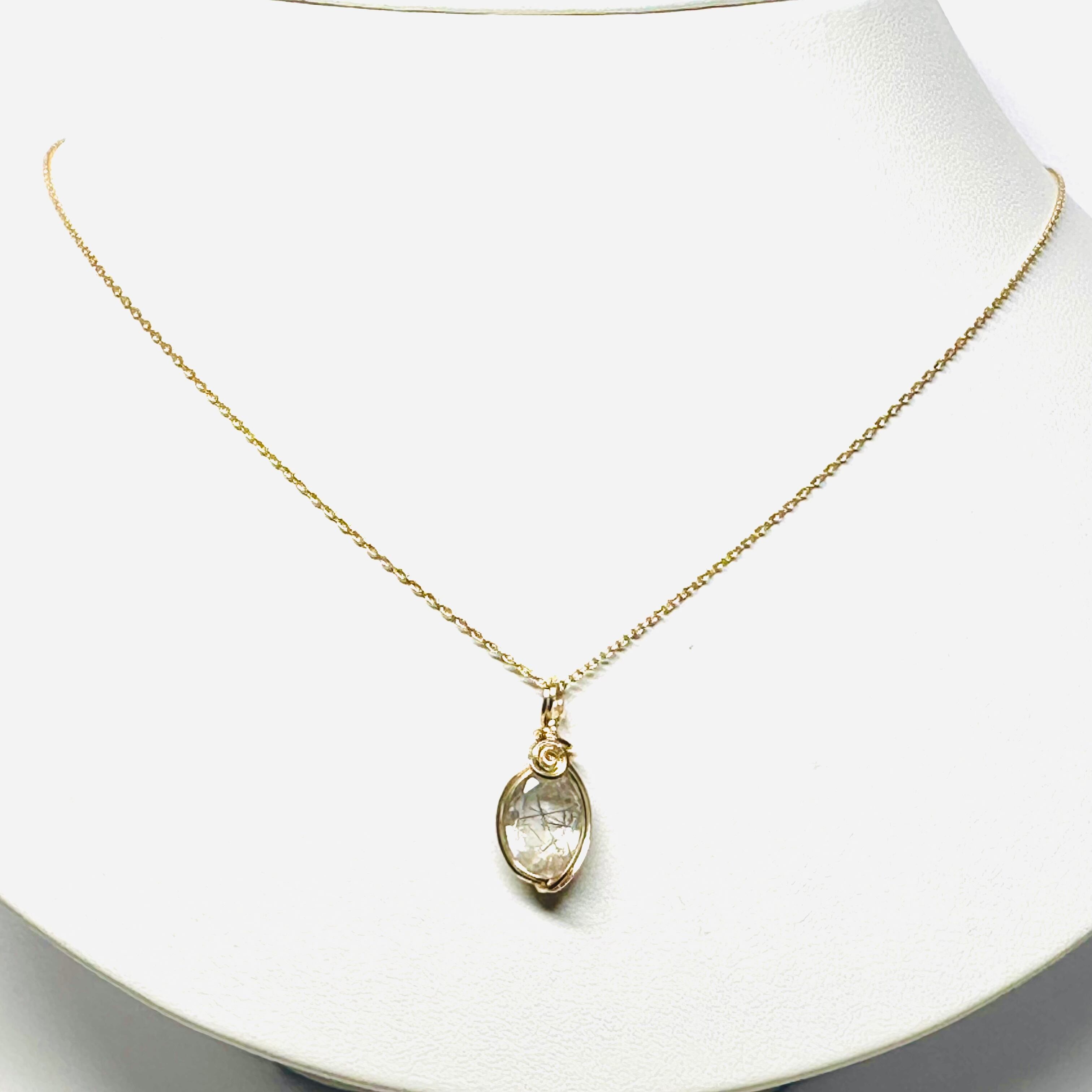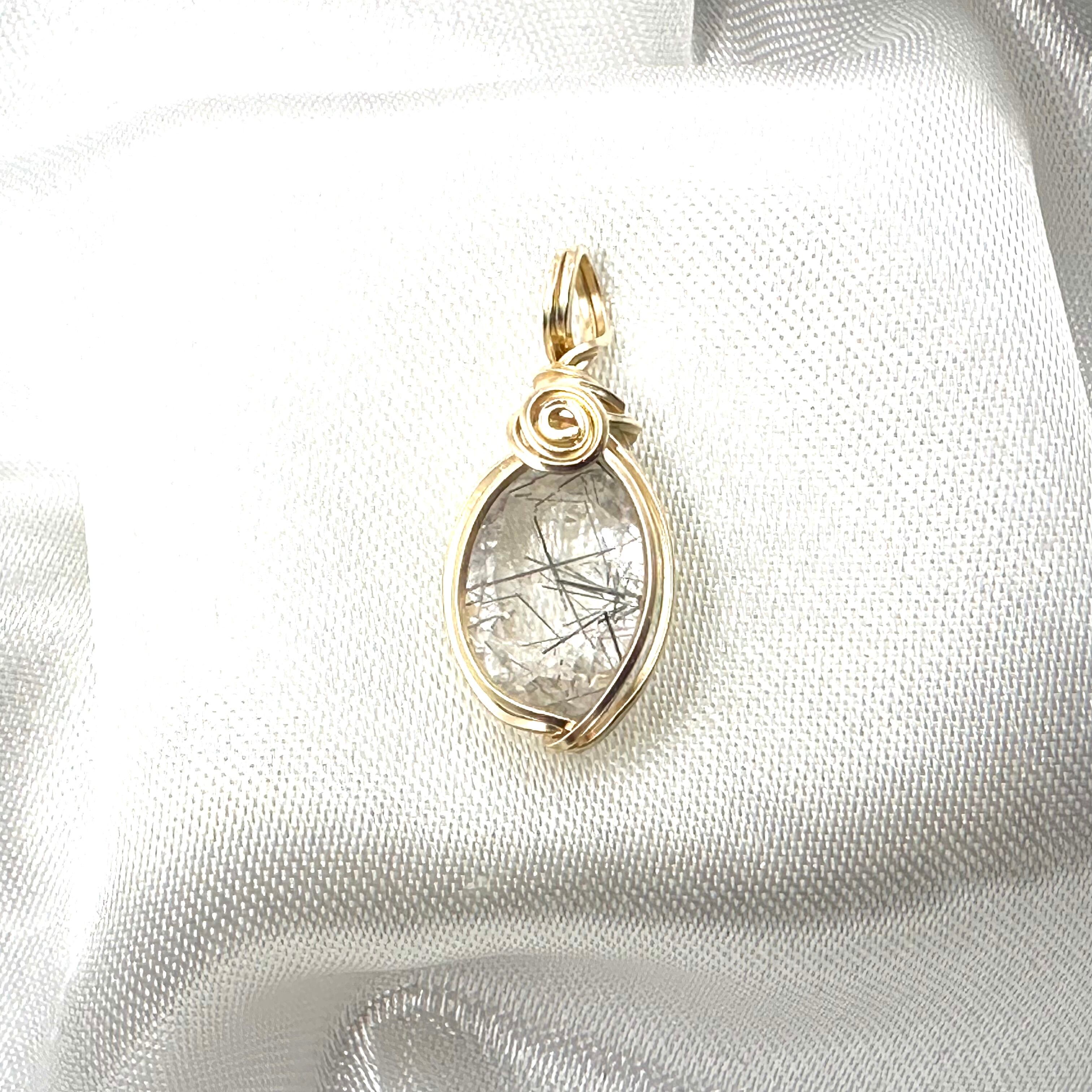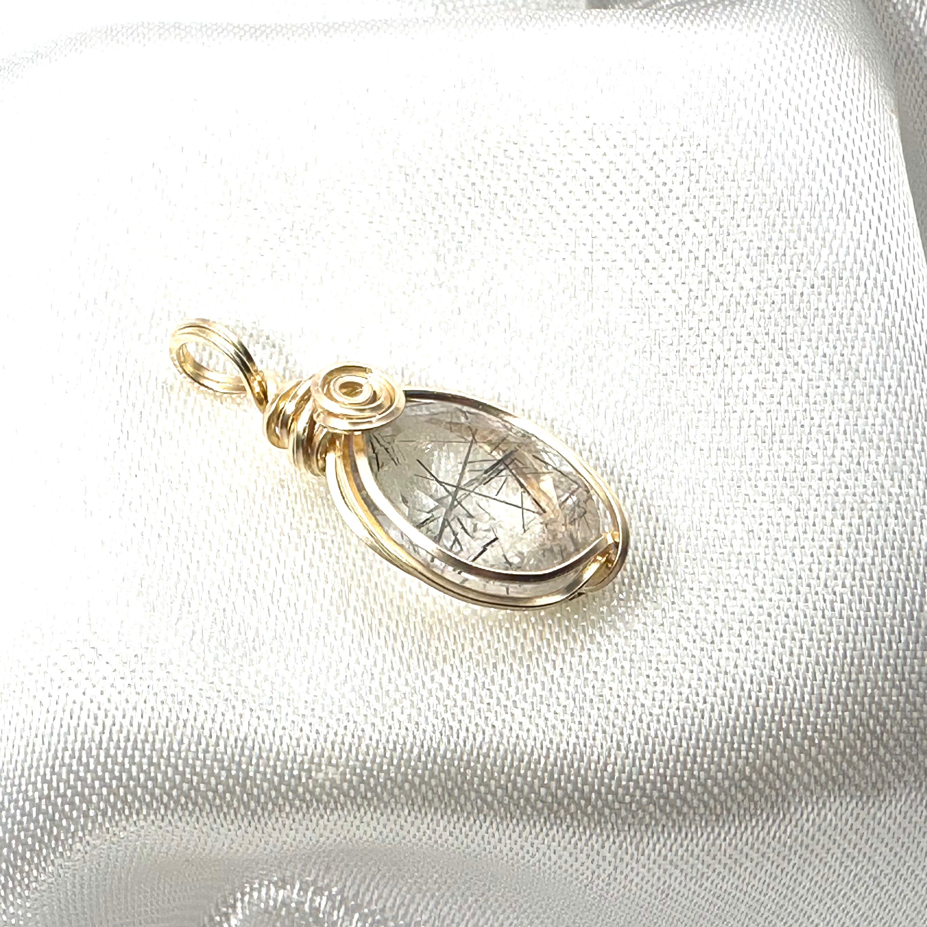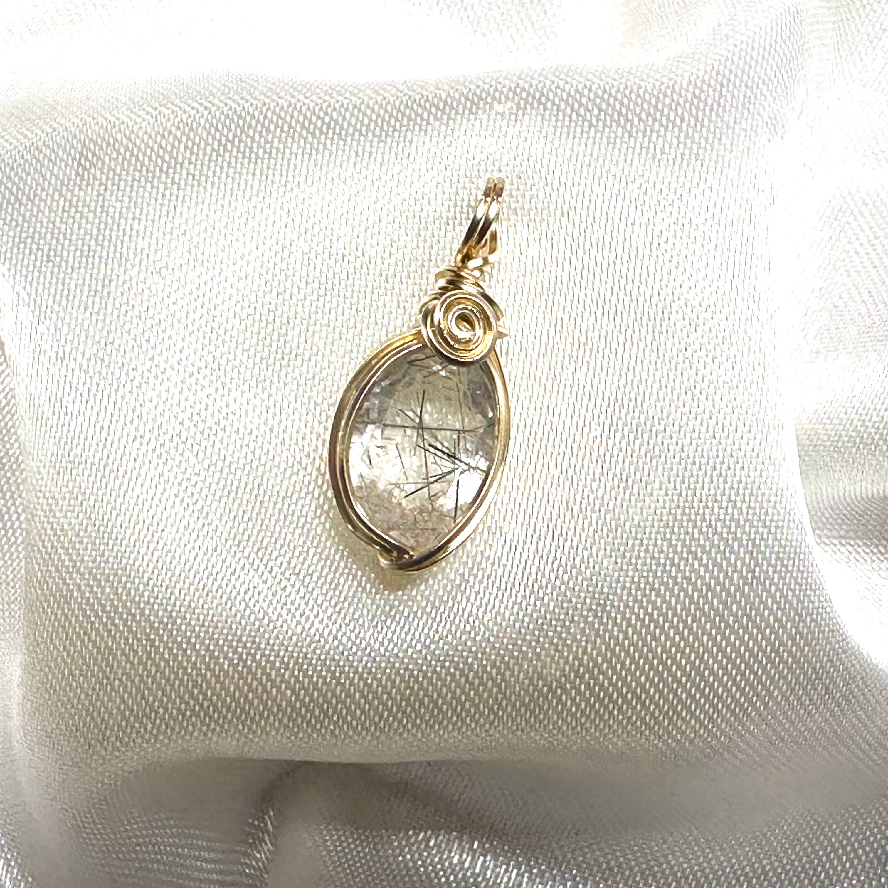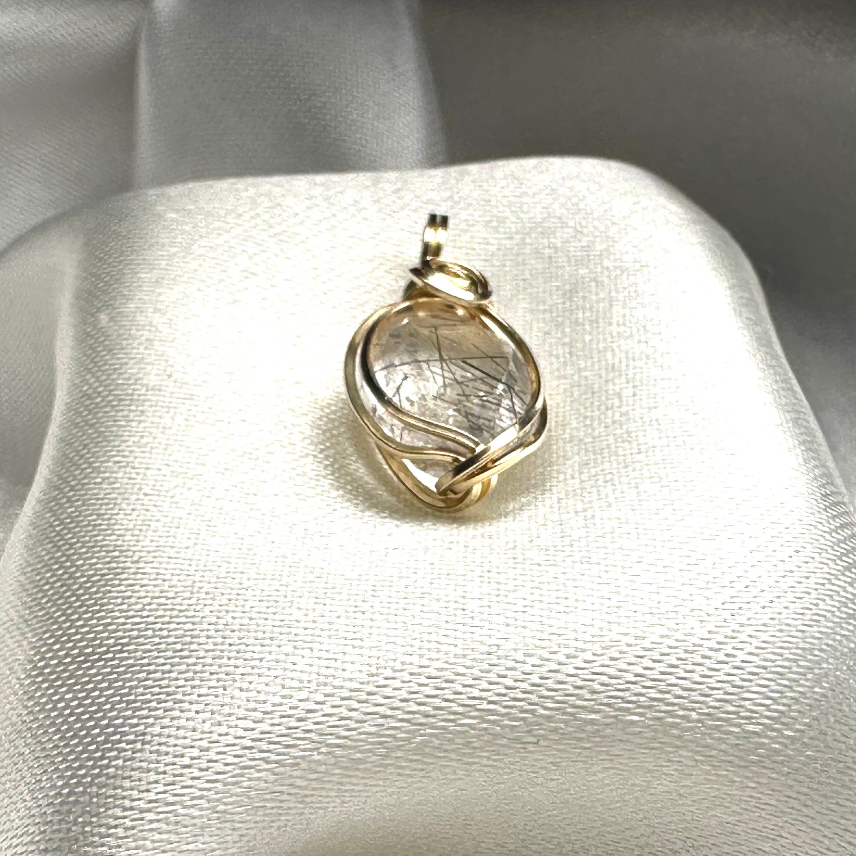こちらのペンダントに使用した石は、針状のブラックトルマリンが内包されているトルマリン・イン・クォーツです。